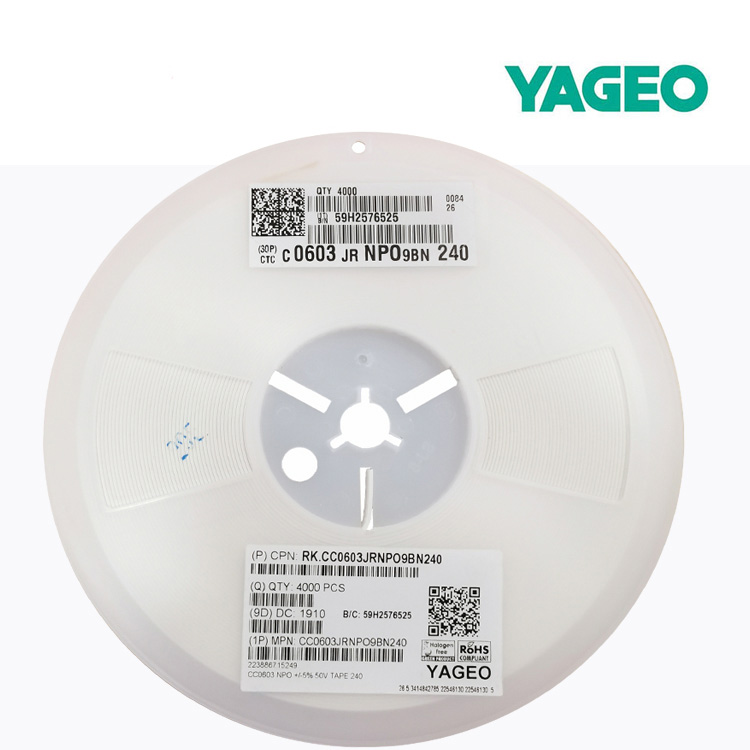 国巨 贴片电容 0603 NPO 24 PF ±5% 50V (0603JR NPO9BN240) 4K一盘